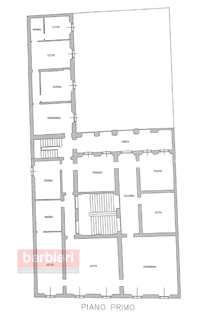 Al secondo piano sono presenti ulteriori 5 stanze per un totale di circa 360 mq.